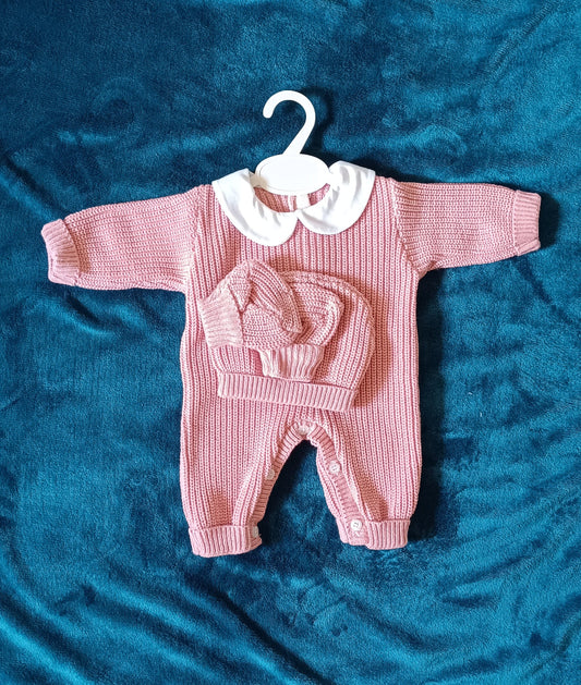 Ensemble 3 pièces en maille – Pyjama, bonnet et chaussons – 0-3 mois