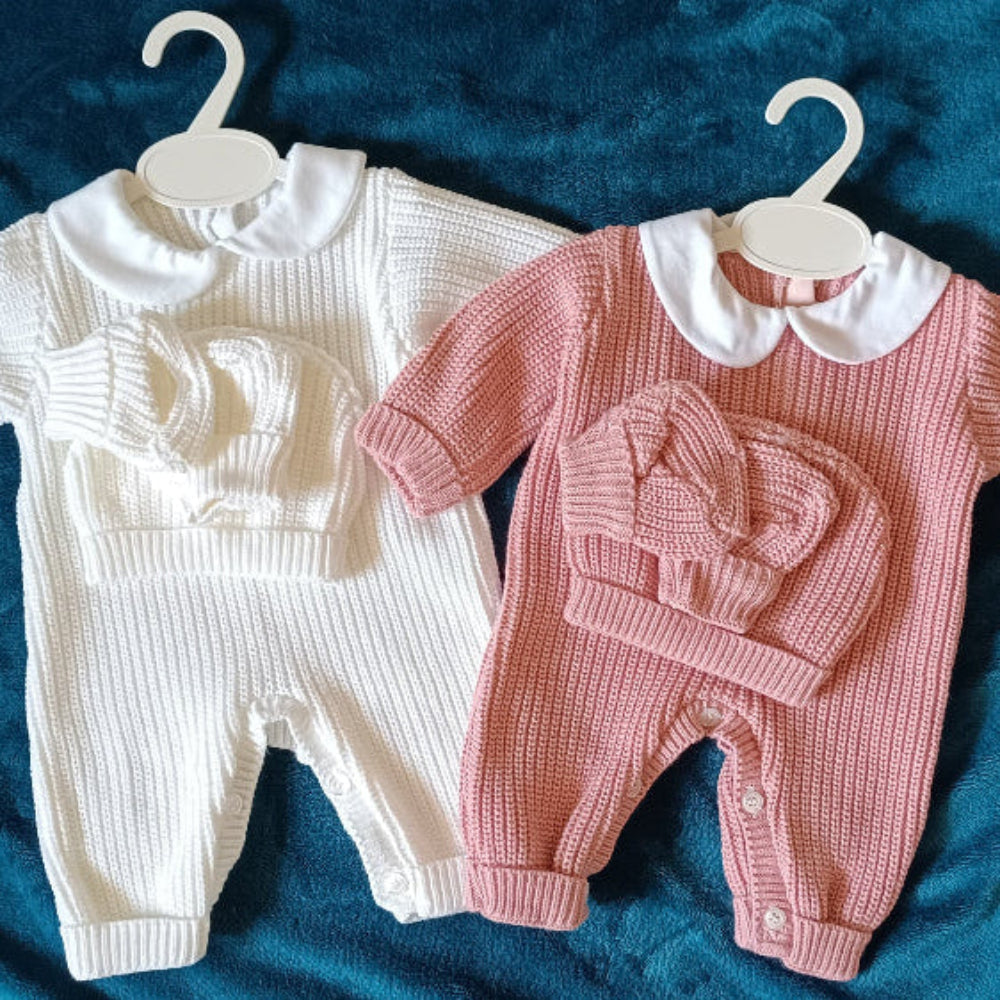 Ensemble 3 pièces en maille – Pyjama, bonnet et chaussons – 0-3 mois
